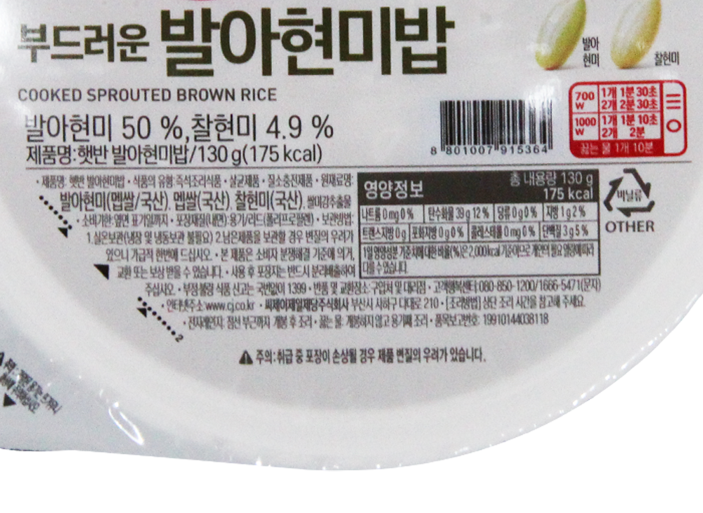 | 제품명 | 햇반 발아현미밥 130g /CJ |