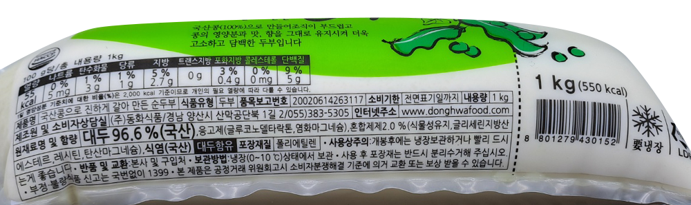 | 제품명 | 국산콩 순두부 1kg/동화식품 |