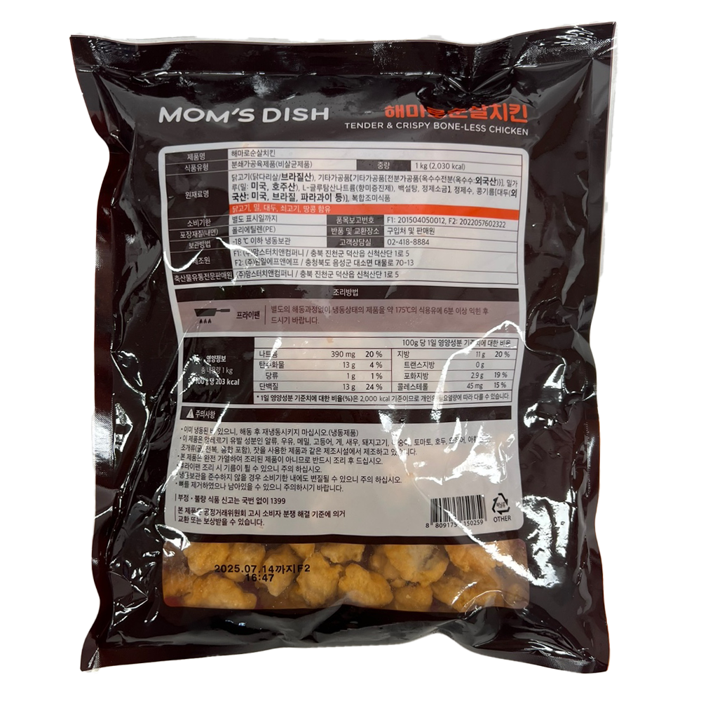 | 제품명 | 맘스디쉬 해마로 순살치킨 1kg/맘스터치 |