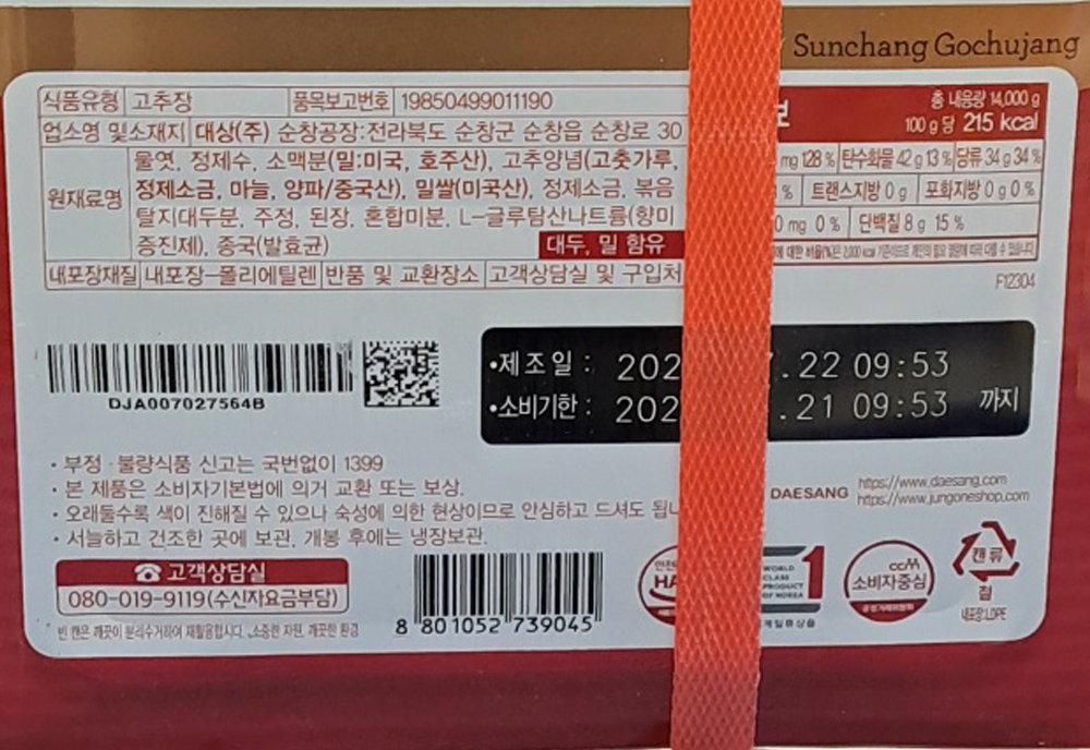 | 수입식품에 해당하는 경우 | 상세정보 별도표기 |