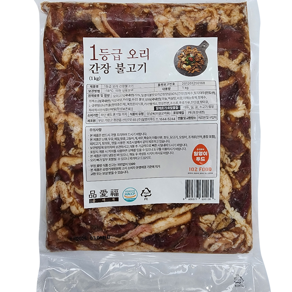 | 제품명 | 1등급 오리 간장 불고기 1kg/일영이푸드 |