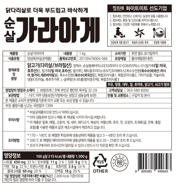 | 제품명 | 순살가라아게 1kg/참프레 |