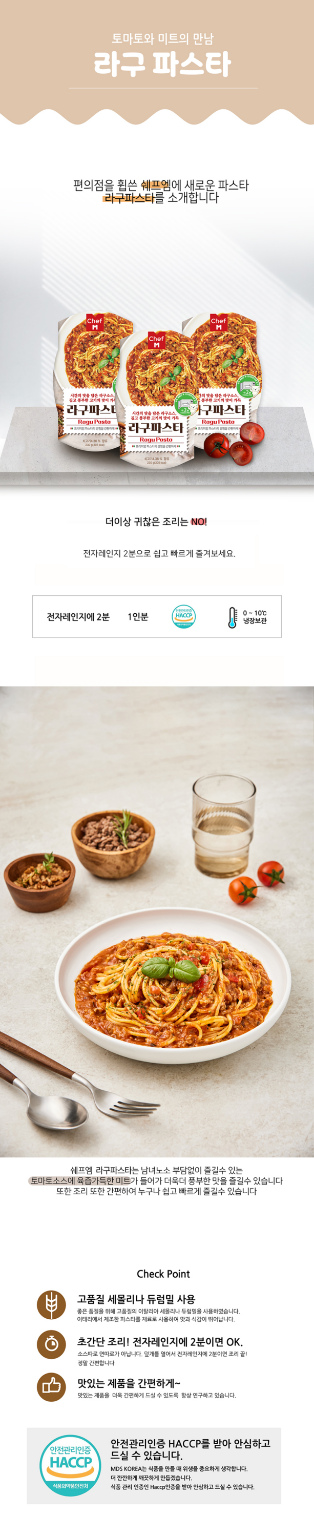 | 제품명 | 쉐프엠) 라구(미트) 파스타 230g/MDS코리아 |