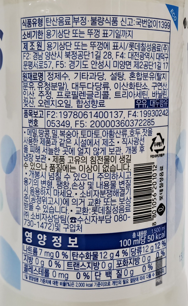 | 제품명 | 밀키스 1.5L /롯데칠성 |