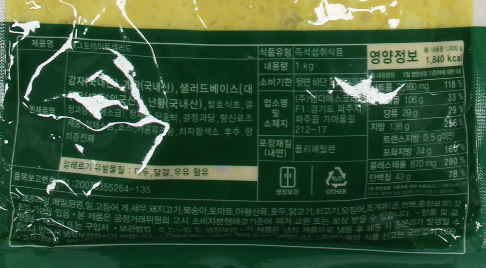 | 제품명 | 샐러드미인) 에그포테이토샐러드 1kg/MDS코리아 |