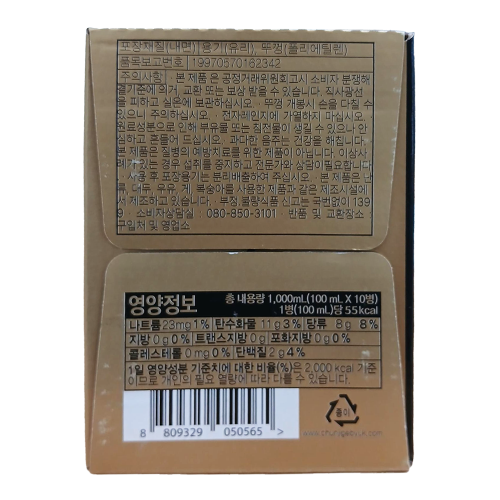 | 포장단위별 내용물의 용량(중량), 수량 | CASE/[100ML*10EA] |