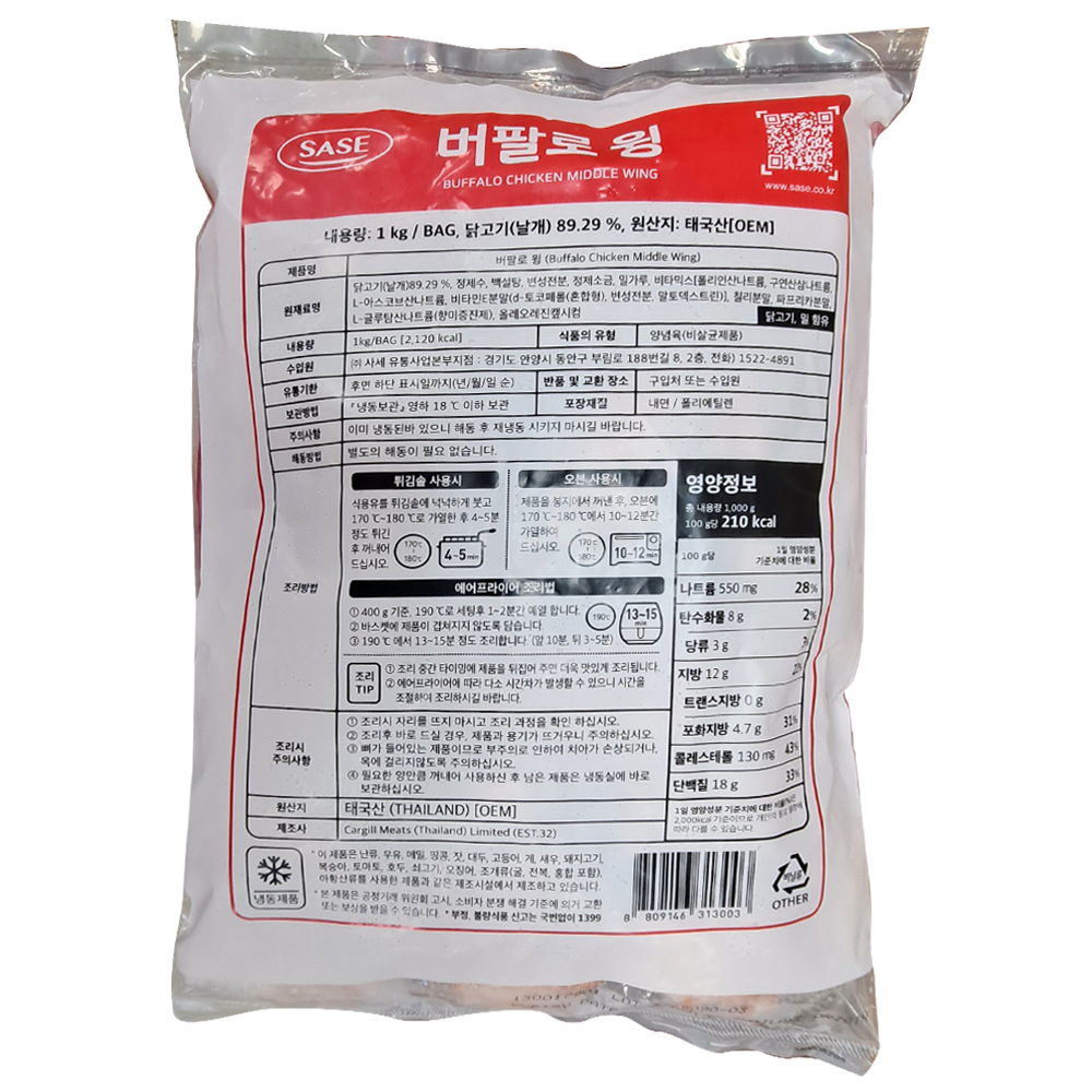| 제품명 | 버팔로 윙 1kg (태국산·미들윙)/사세 |
