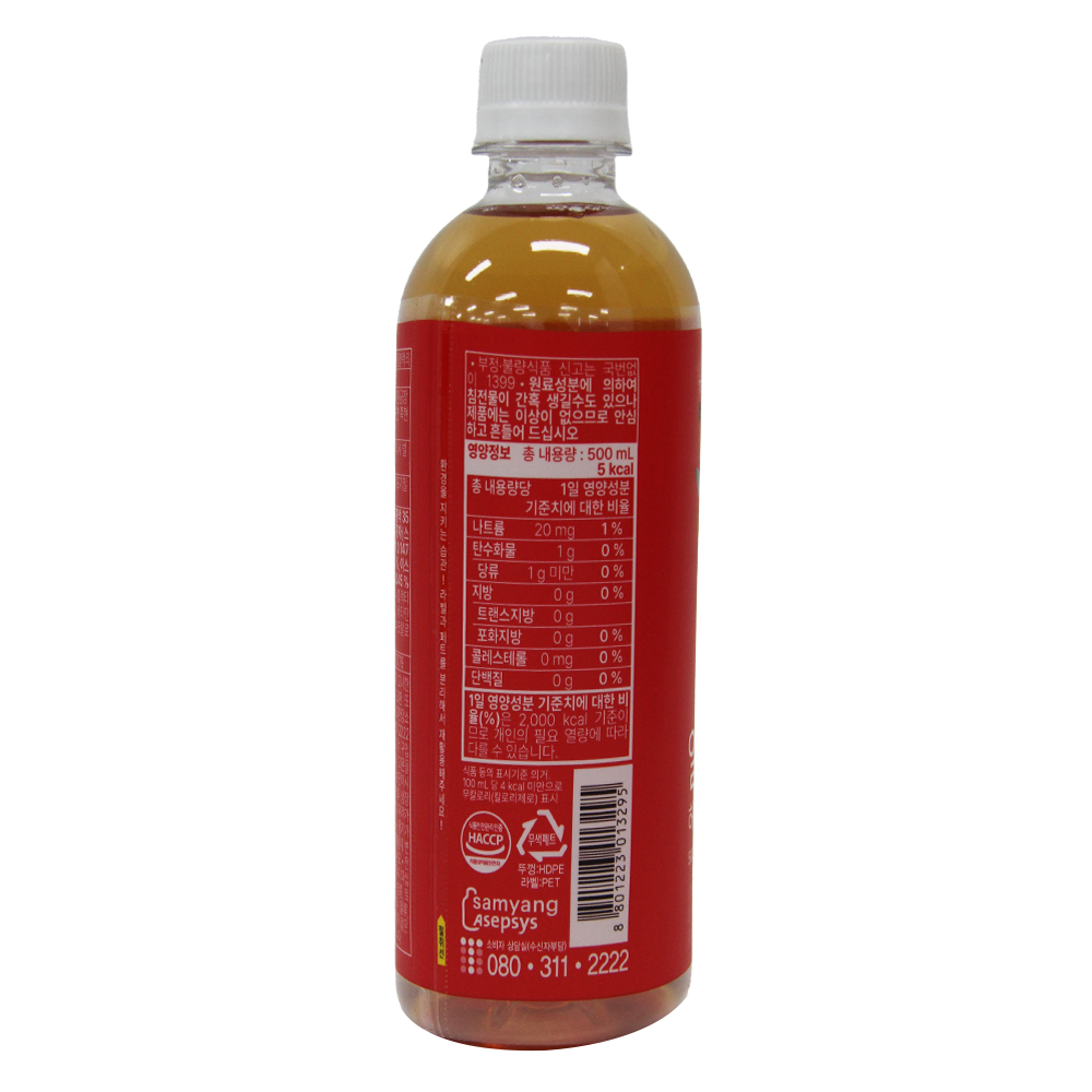 | 포장단위별 내용물의 용량(중량), 수량 | PET/[500ML] |