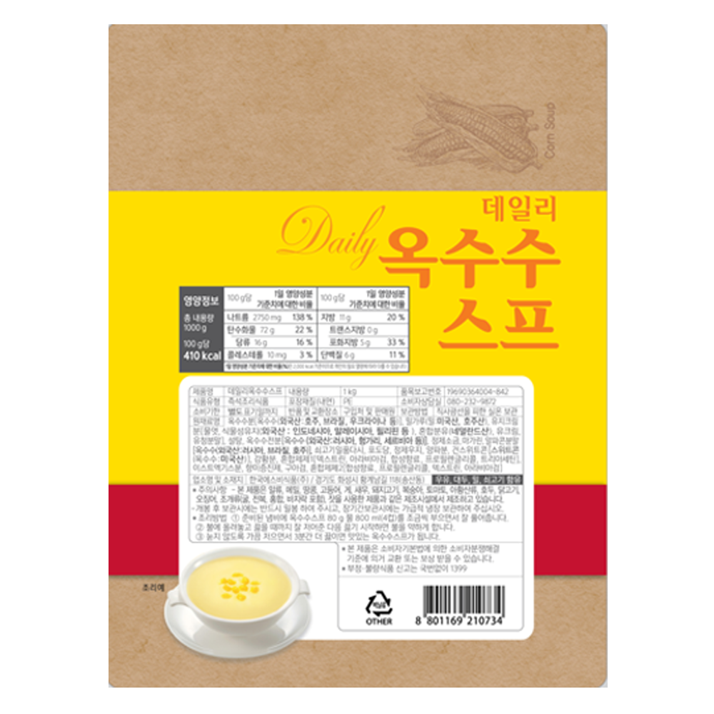 | 제품명 | 데일리 옥수수스프 1kg/KSB |