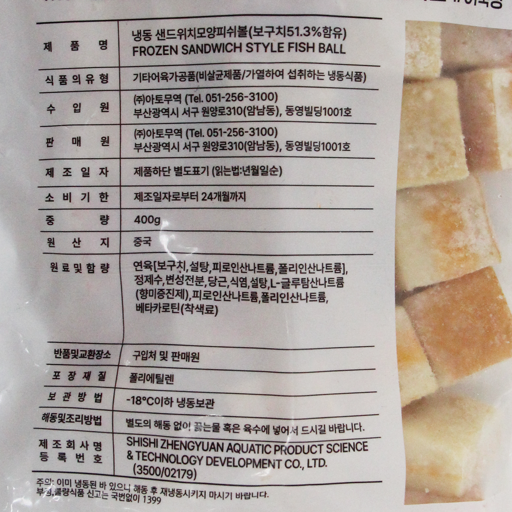 | 제품명 | 샌드위치피쉬볼 400g/아토무역 |