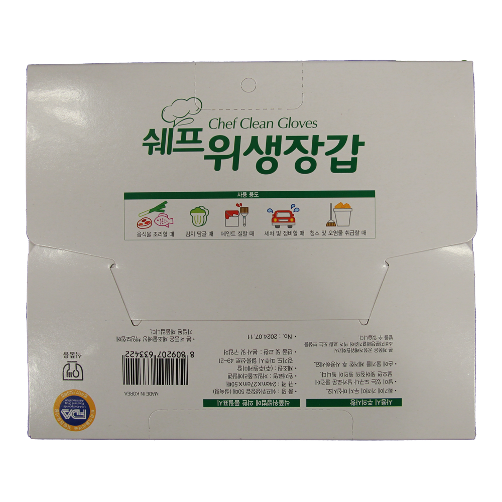 | 제품명 | 쉐프 위생장갑 50매 (실속형)/주원케미칼 |