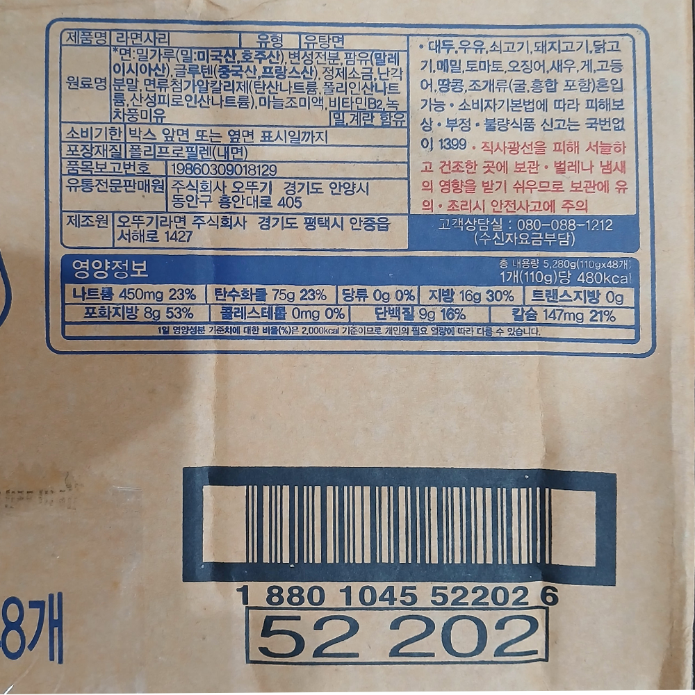 | 제품명 | 라면사리 개별포장(110g*48개입)/오뚜기 |