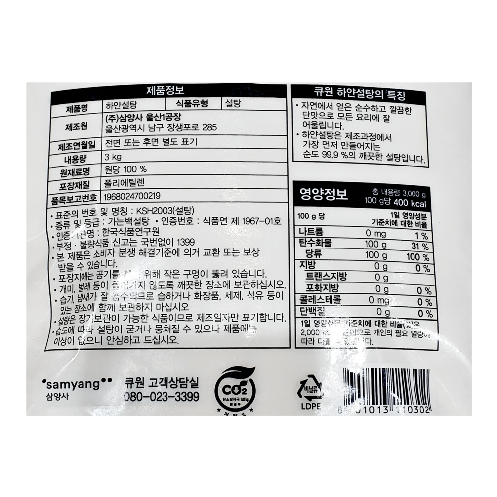 | 제품명 | 큐원) 하얀설탕 3kg/삼양사 |