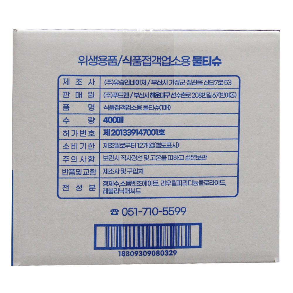 | 제품명 | 고급형 엠보싱물티슈 400개입/푸드엔 |