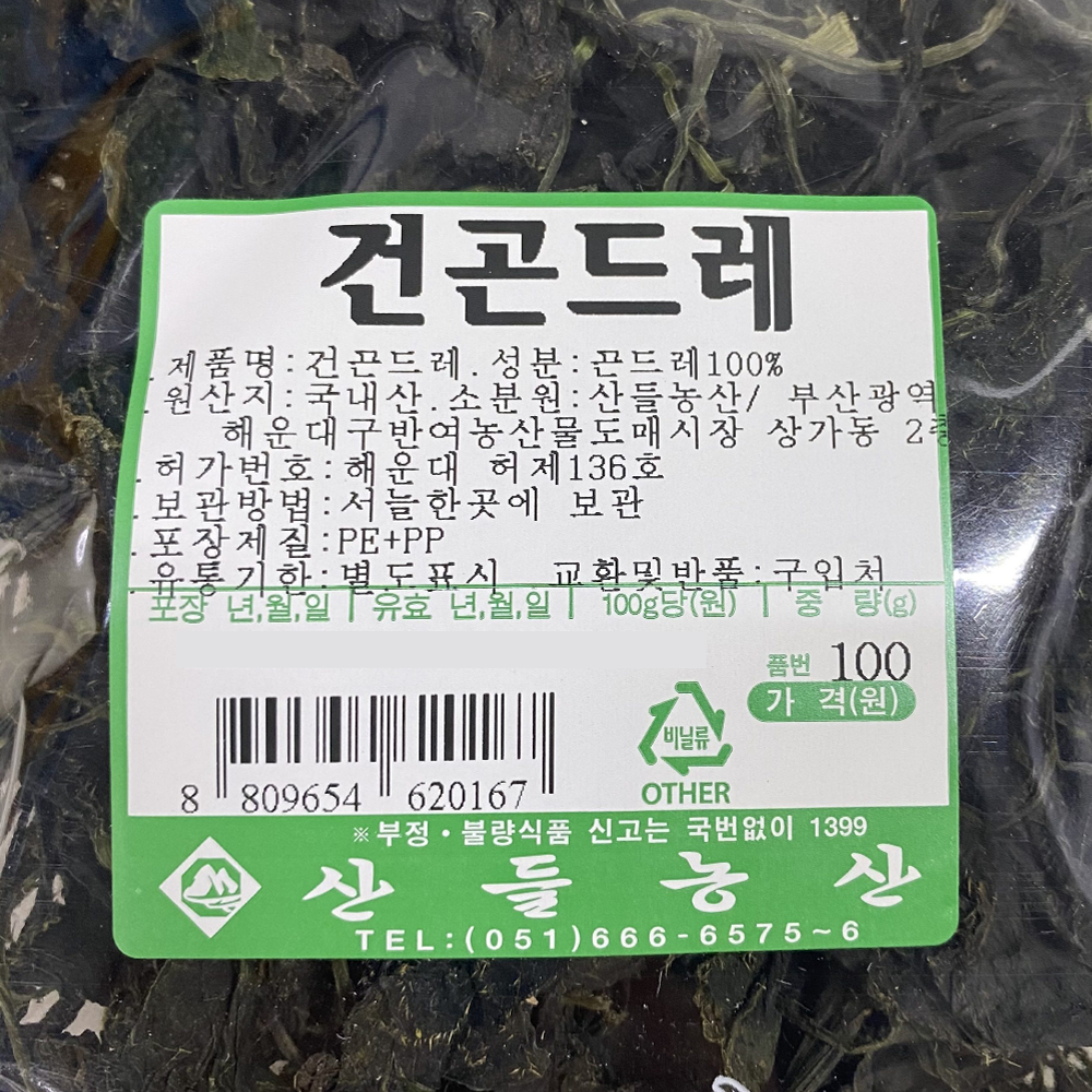 | 품목 또는 명칭 | 건곤드레·100g(국내산)/산들농산 |