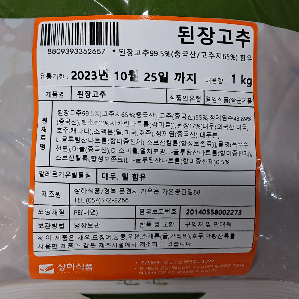 | 제품명 | 된장 고추지 1kg/상하식품 |