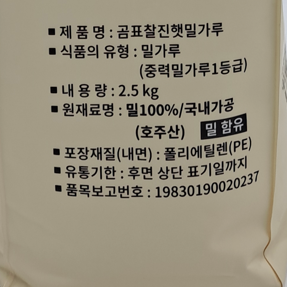 | 제품명 | 곰표 찰진햇밀가루 2.5kg/대한제분 |