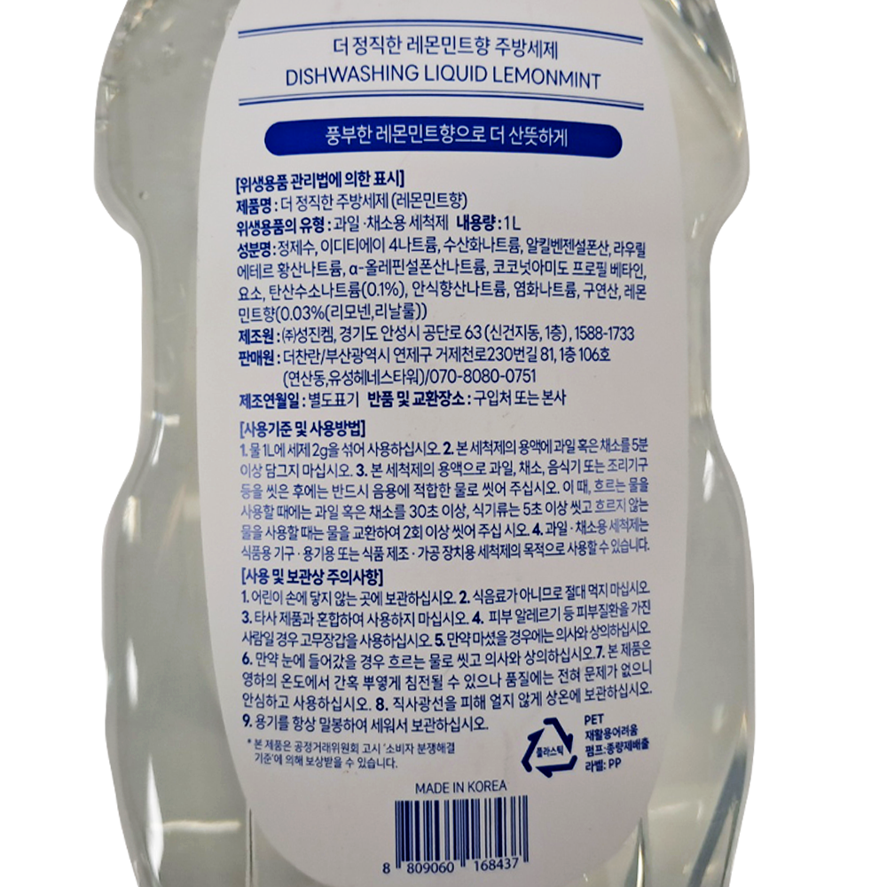 | 제품명 | 더 정직한 주방세제(레몬민트) 용기 1L /더찬란 |