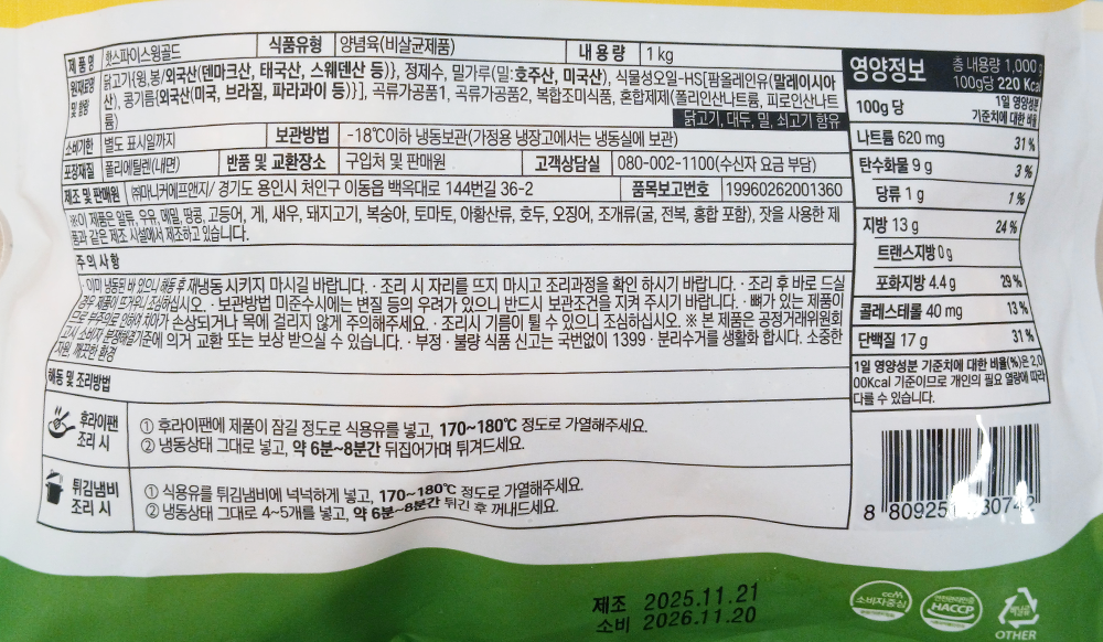 | 제품명 | 핫스파이스윙골드 1kg/마니커 |