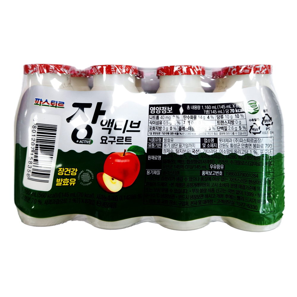 | 제품명 | 파스퇴르) 장액티브 사과 8개입 |