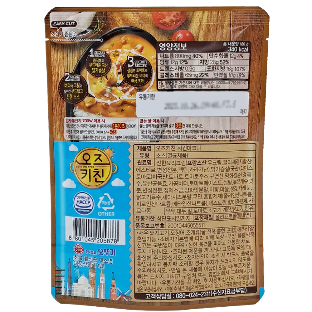 | 제품명 | 오즈키친 치킨마크니 카레 180g/오뚜기 |