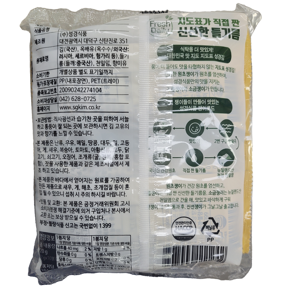 | 제품명 | 지도표 재래식 성경 도시락김 (2g*10봉)/성경식품 |