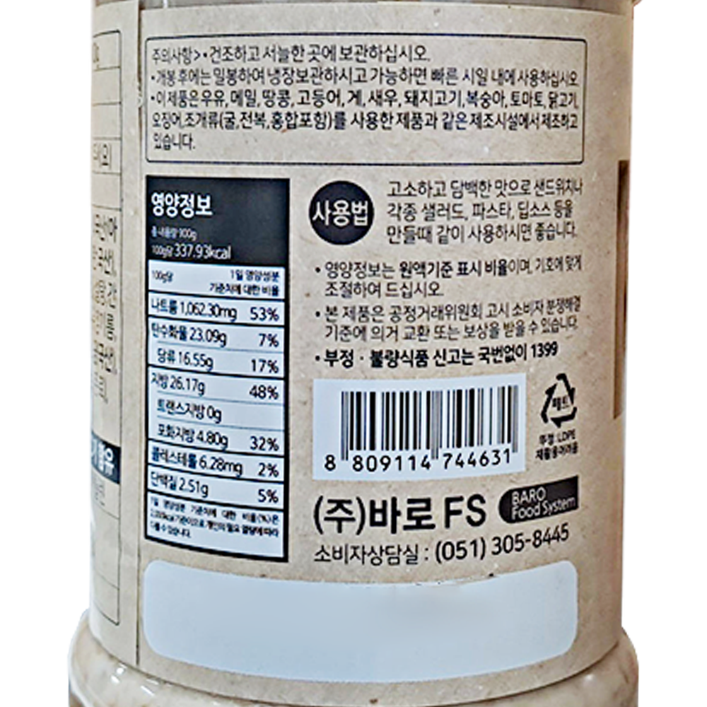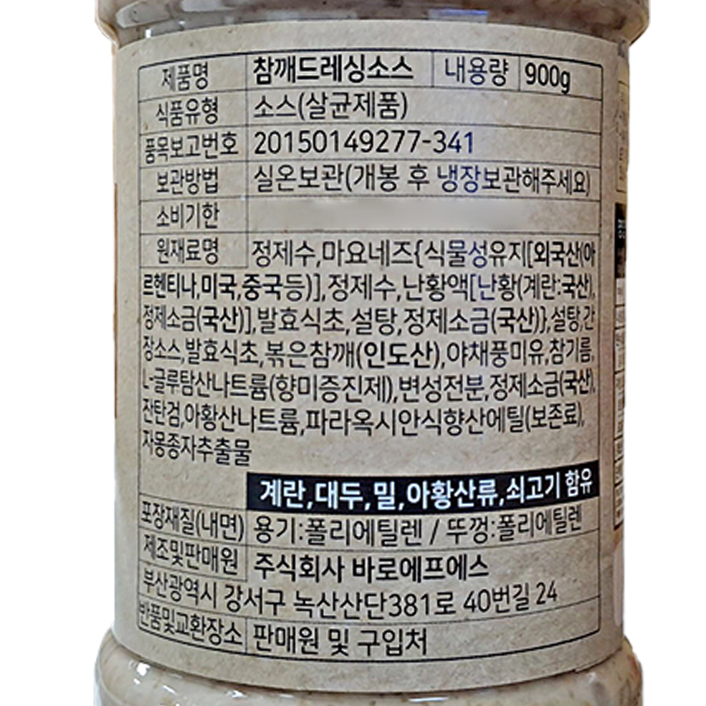 | 제품명 | 바로 참깨드레싱소스 900g/바로FS |