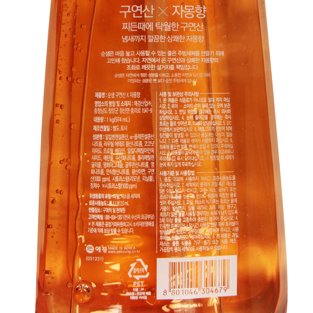 | 제품명 | 순샘 구연산 주방세제(자몽) 용기 1kg/ 애경 |