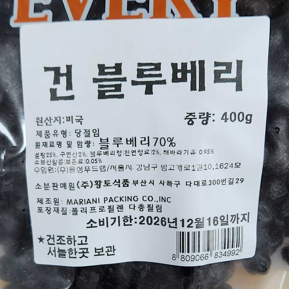 | 제품명 | 건 블루베리 400g /황토식품 |