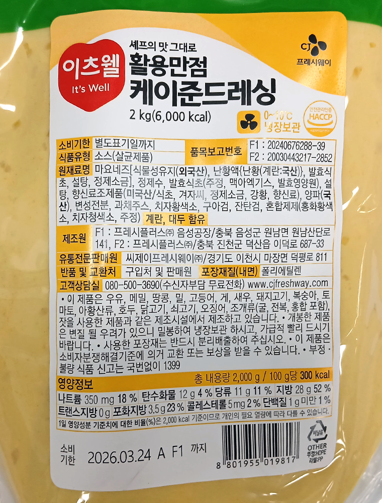 | 제품명 | 이츠웰 케이준드레싱 2kg/CJ |