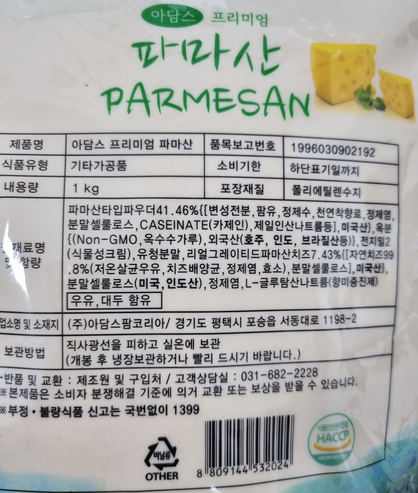 | 제품명 | 아담스 파마산치즈가루 1kg/베이킹맘 |