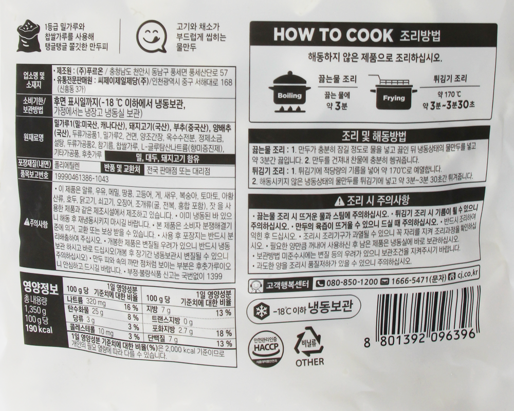 | 제품명 | 크레잇) 촉촉한 물만두 1.35kg/CJ |