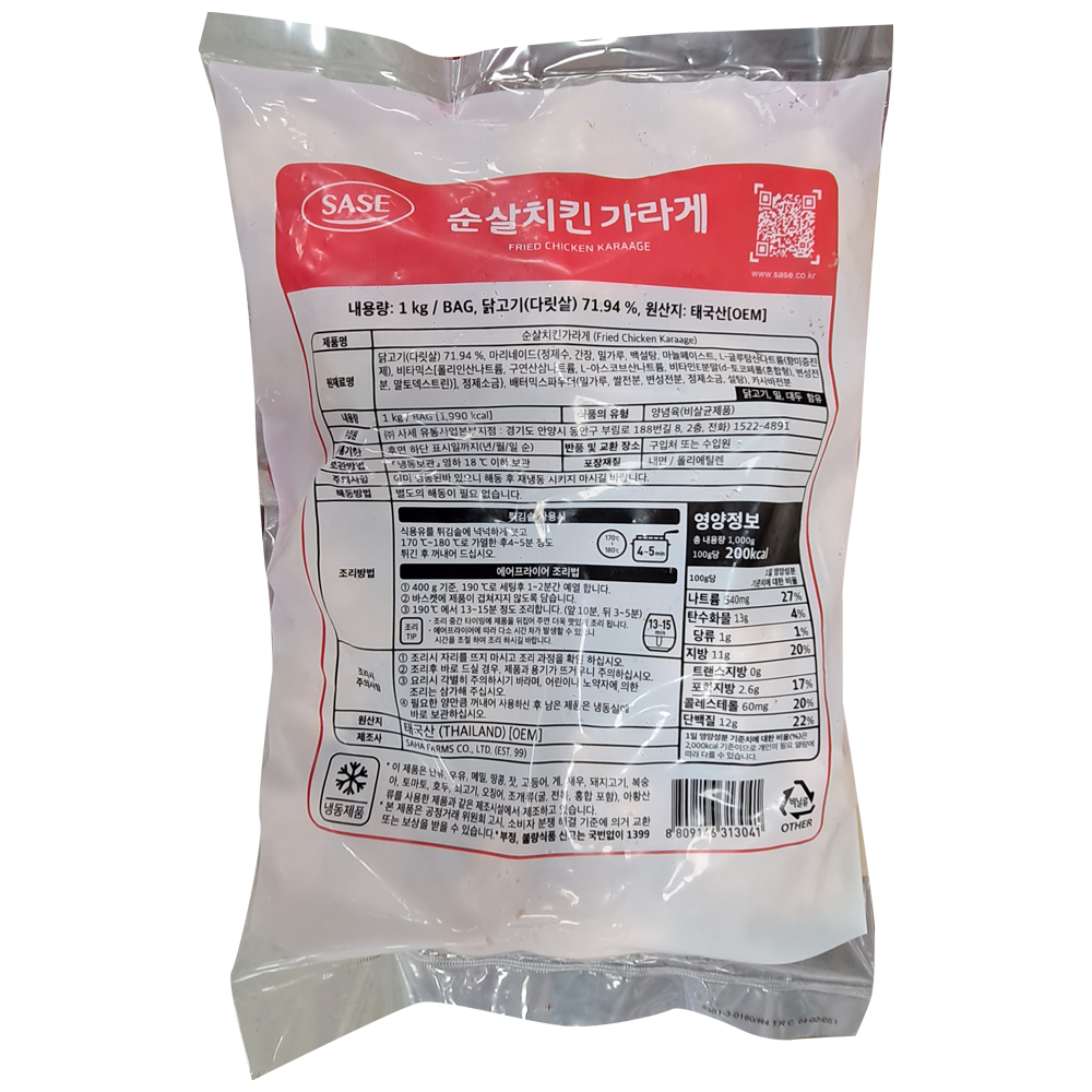 | 제품명 | 순살 치킨가라게 1kg(태국산)/사세 |