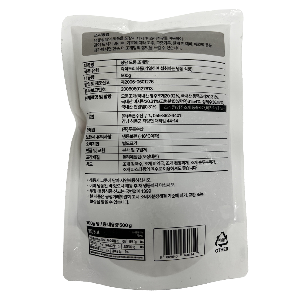 | 품목 또는 명칭 | 정담 냉동 모둠조개탕 500g(국내산)/푸른수산 |