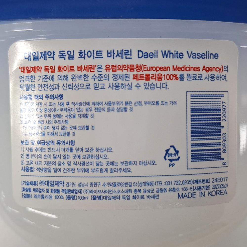 | 제품명 | 독일화이트 바세린 100ml /대익제약 |