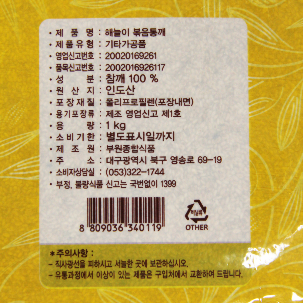 | 제품명 | 해늘이) 볶음통깨 1kg (외국산)/부원종합식품 |