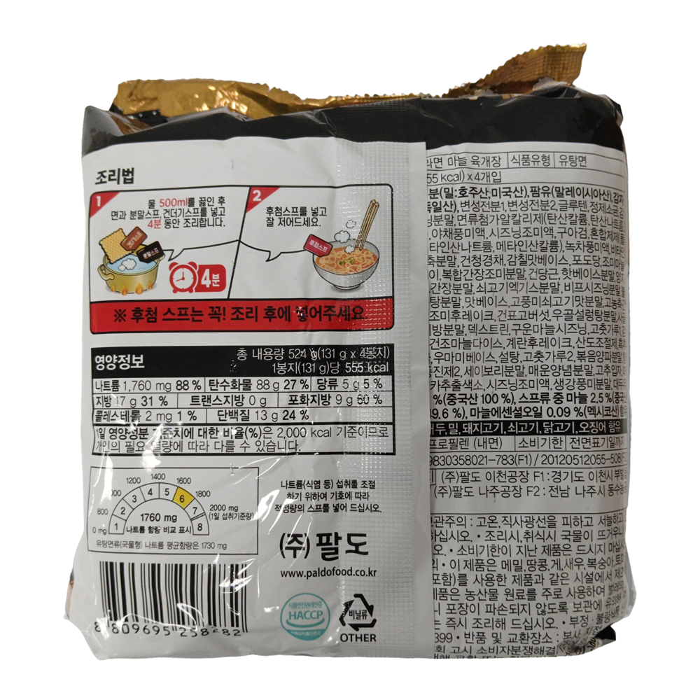 | 제품명 | 상남자라면 마늘 육개장 4개입 (524g)/팔도 |
