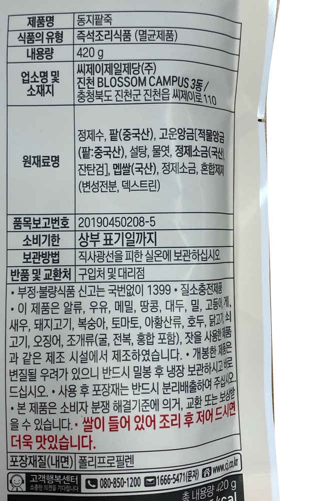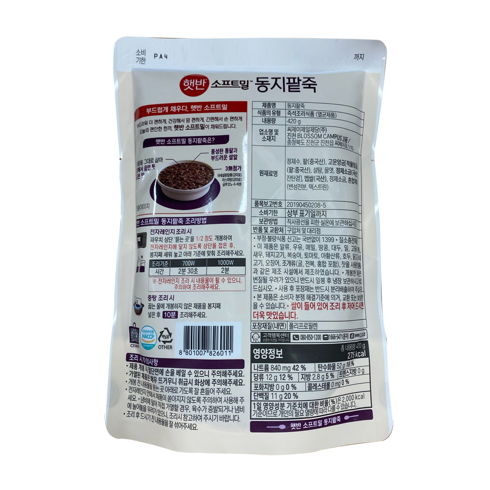 | 제품명 | 소프트밀 동지팥죽 420g /CJ |