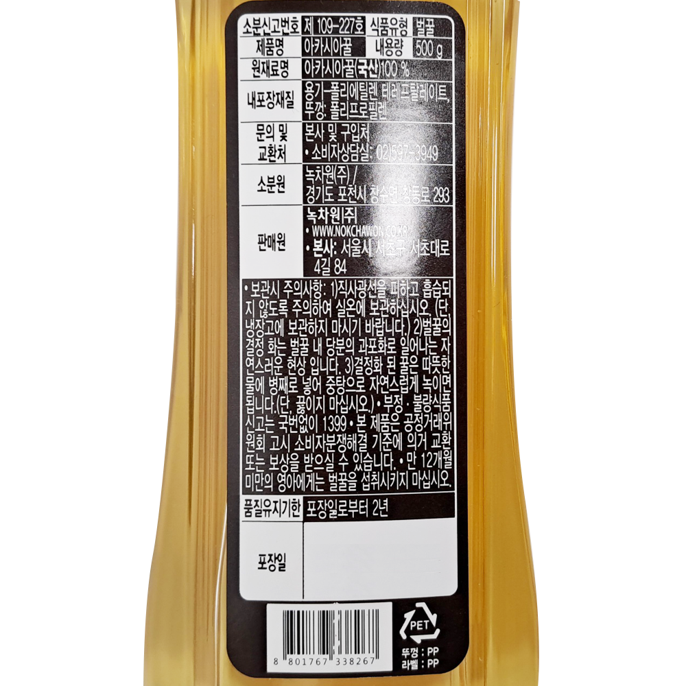 | 제품명 | 아카시아꿀 (국산100%) 500g /녹차원 |