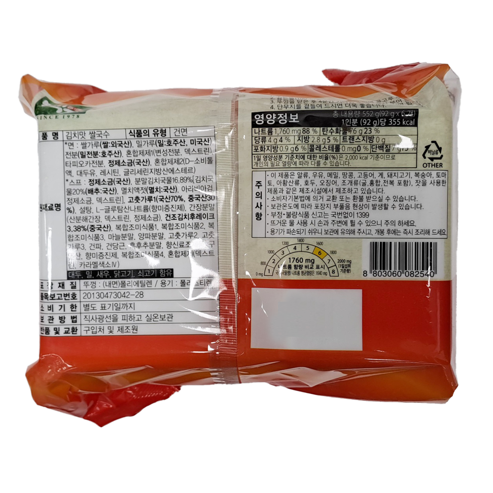 | 제품명 | 김치맛 쌀국수 92g*6입/ 백제 |