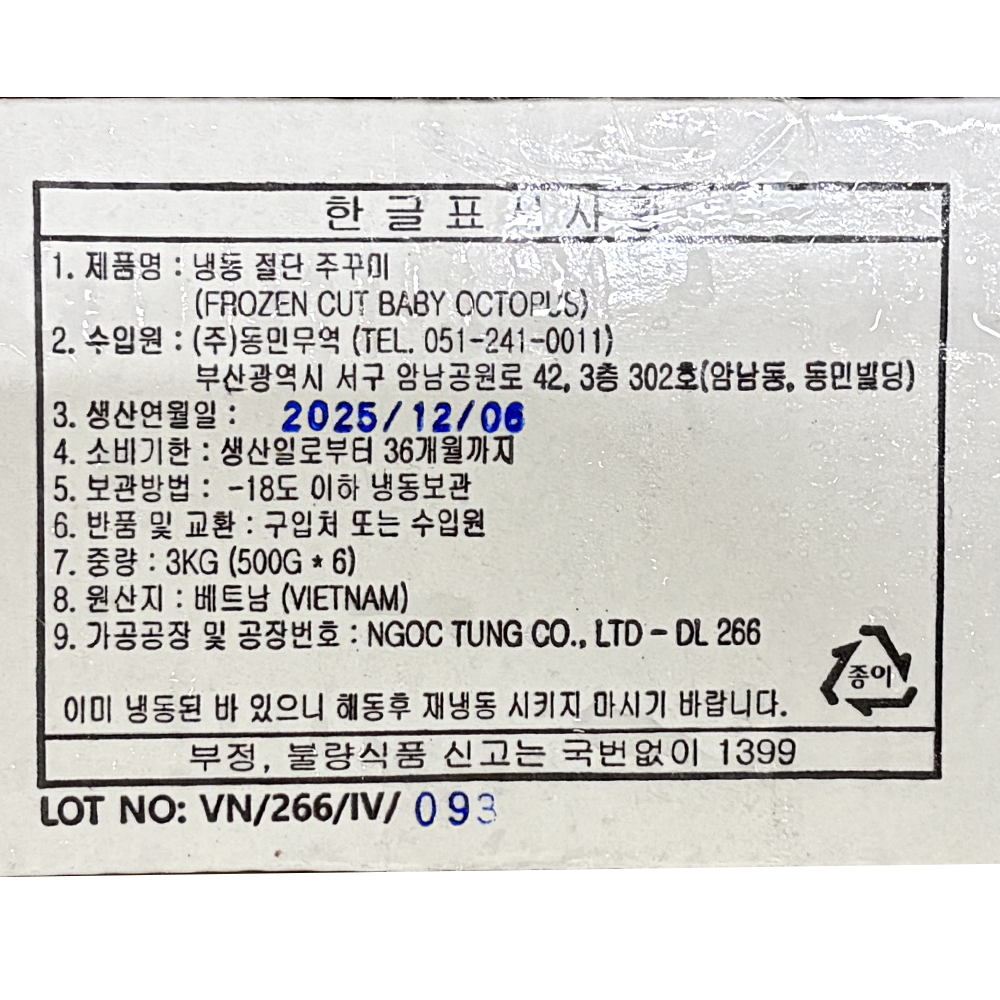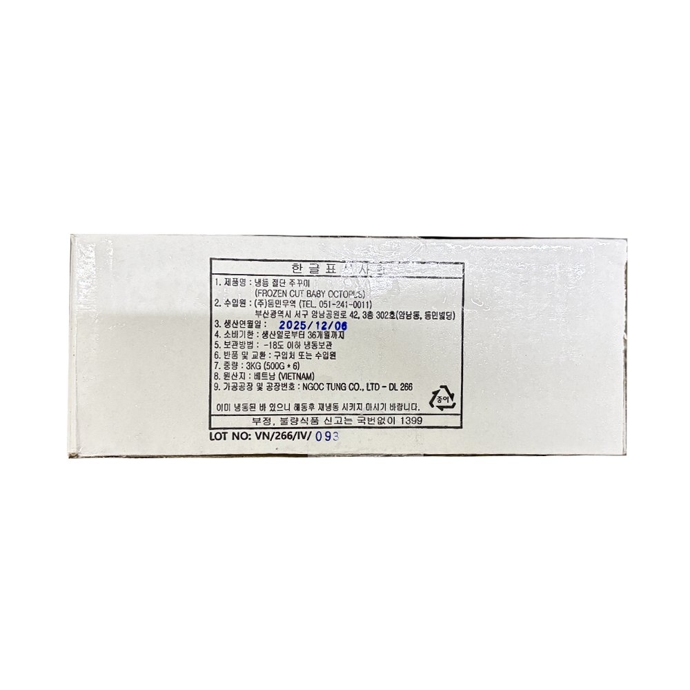 | 품목 또는 명칭 | 냉동 절단쭈꾸미 L 500g/동민무역 |