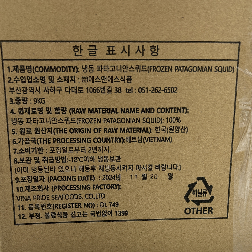 | 품목 또는 명칭 | 냉동 한치 1kg (원양산)/파타고니안스퀴드 |