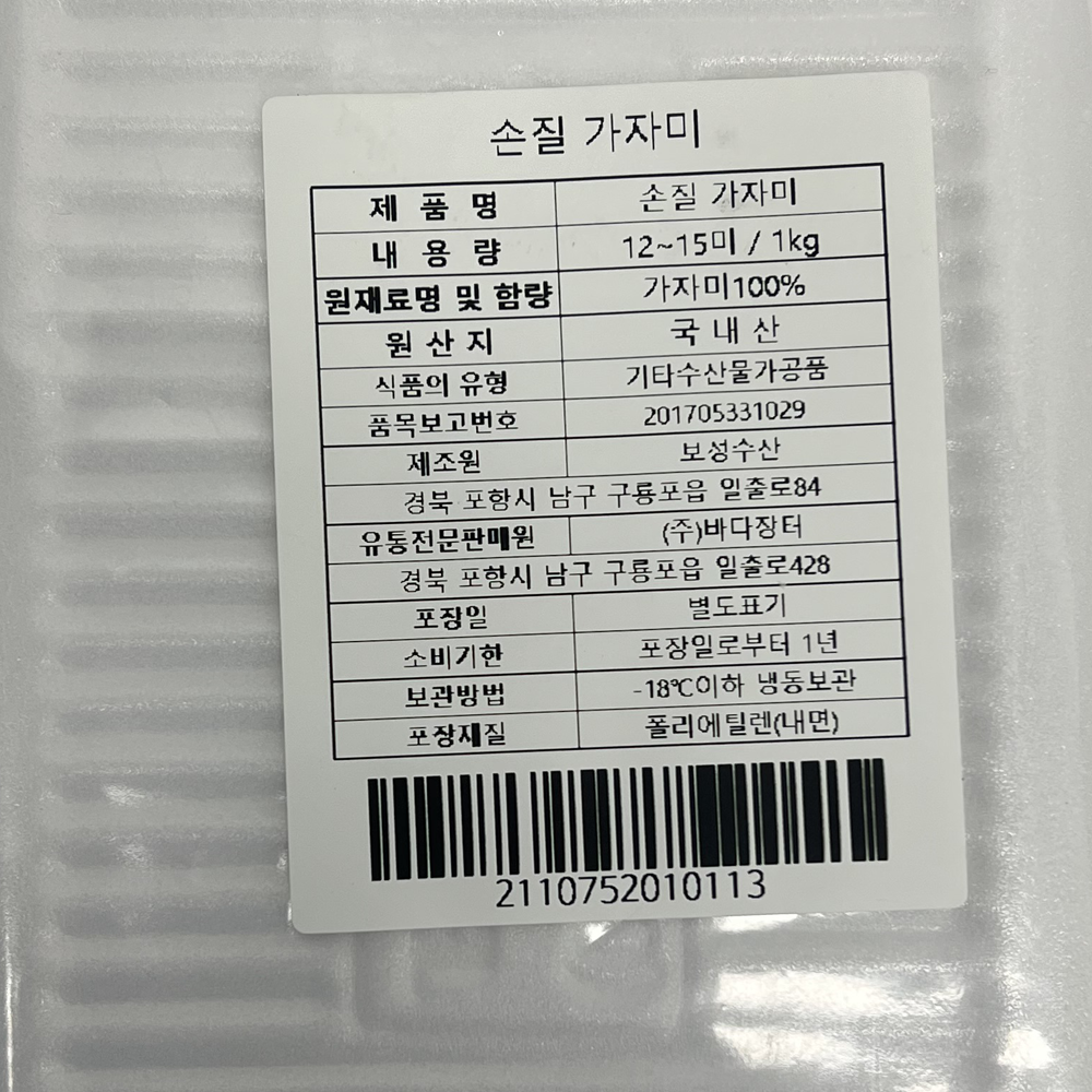 | 품목 또는 명칭 | 국내산 손질 가자미(소) 1kg/바다장터 |