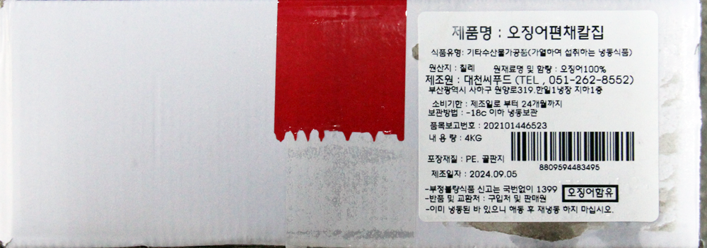 | 품목 또는 명칭 | 오징어편채 칼집(몸·대왕오징어) 4kg/와이에스 |
