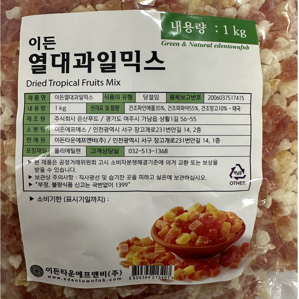 | 제품명 | 열대과일믹스 1kg/이든 |