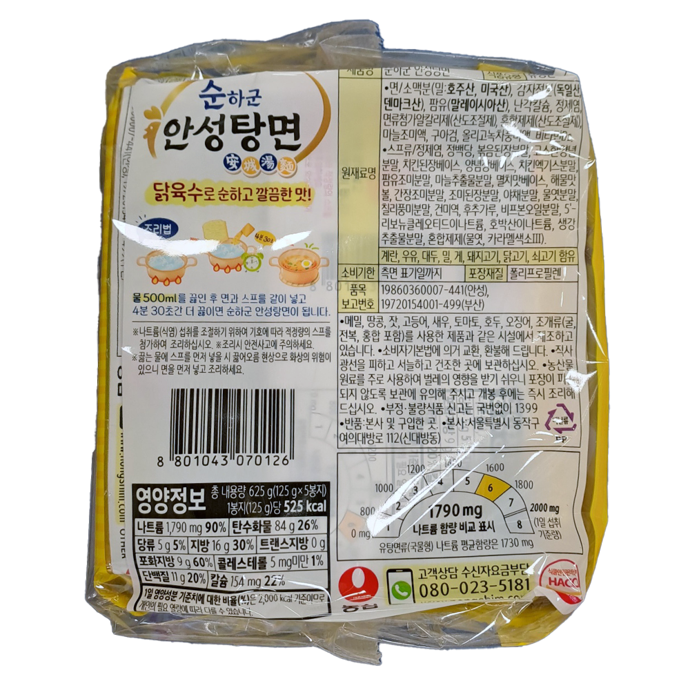 | 제품명 | 순하군 안성탕면 5개입 (625g) /농심 |