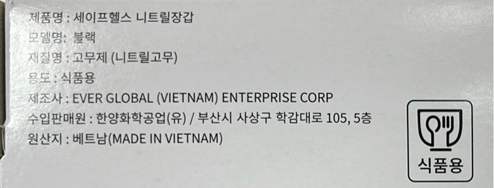 | 제품명 | 세이프헬스 니트릴 장갑 M (블랙) /한양화학 |
