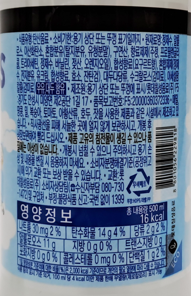 | 제품명 | 밀키스 ZERO 500ml /롯데칠성 |