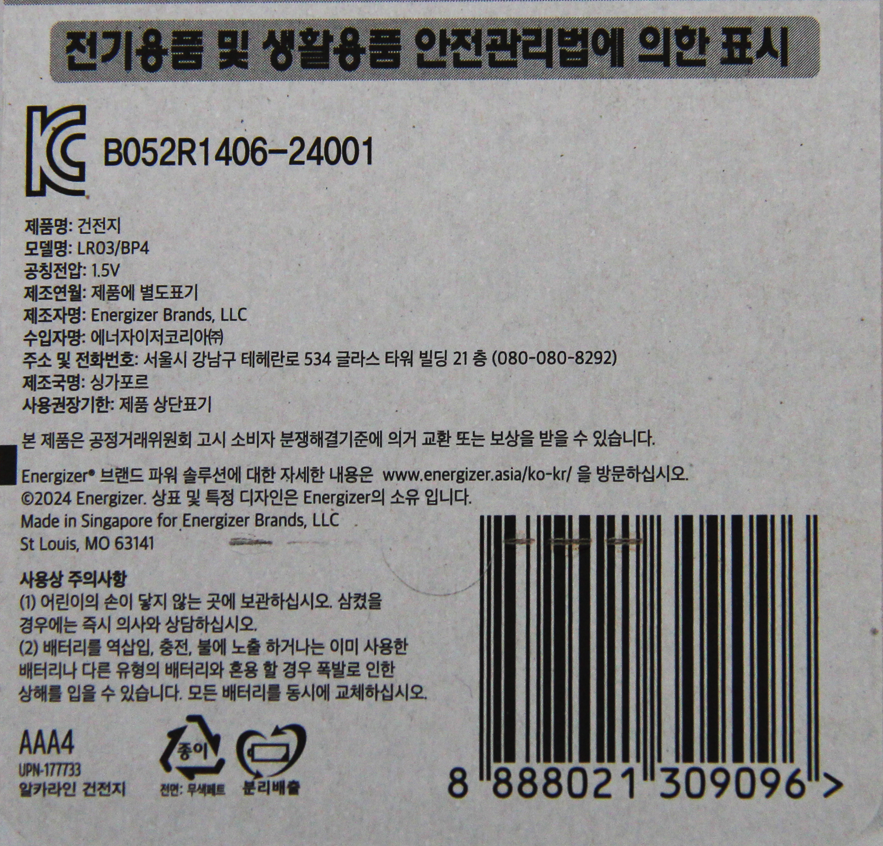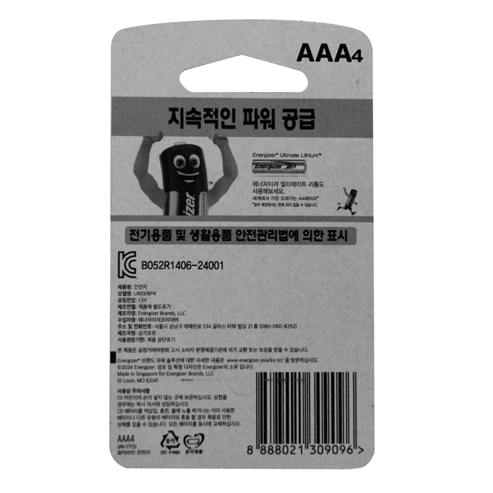 | 제품명 | NEW 에너자이저 AAA 4P /알카라인건전지 |