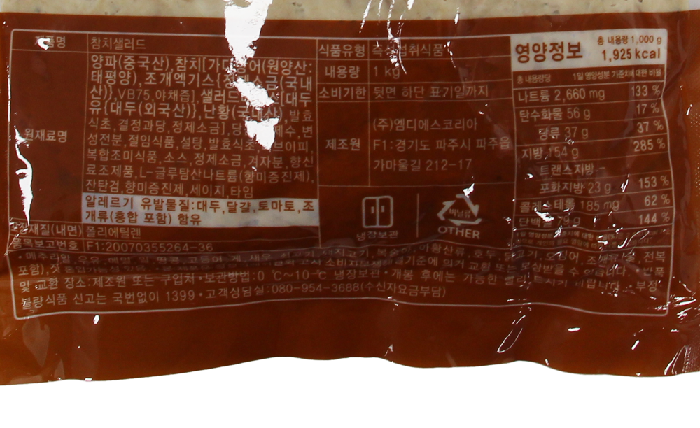 | 제품명 | 샐러드미인) 참치샐러드 1kg/MDS코리아 |